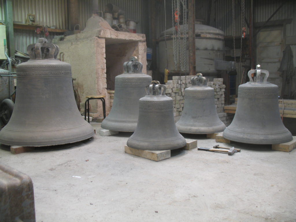 De jonge talentvolle klokkengieter Simon Laudy uit Finsterwolde kreeg de opdracht om zeven klokken te gieten in Van Wou-factuur die samen met de oude twee Van Wou-klokken een harmonieus gelui zouden vormen.